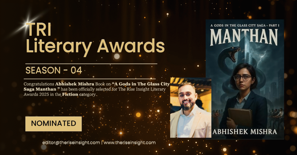 The Rise Insight is honored to extend its warmest congratulations to Abhishek Kumar Mishra, whose gripping conspiracy thriller A Gods in The Glass City Saga: Manthan has been officially nominated for the esteemed TRI Literary Awards 2026 – Season 04 in the Fiction category. This nomination celebrates his exceptional craft, his mastery of tension, and his ability to merge human emotion with engineered precision in storytelling.