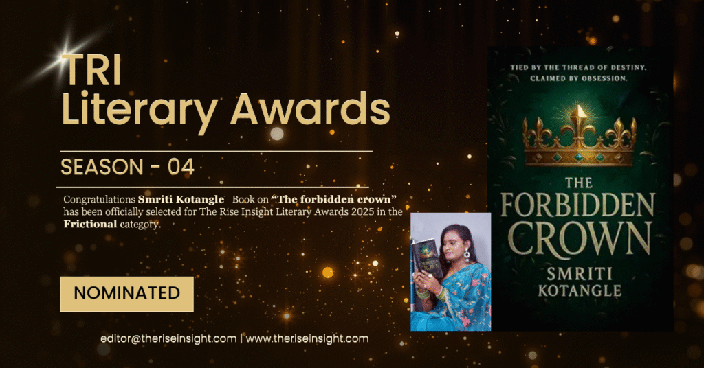 The Rise Insight proudly extends its heartfelt congratulations to Author Smriti Kotangle for her remarkable nomination at the TRI Literary Awards 2026 – Season 04 for her extraordinary work, “The Forbidden Crown.” This nomination is a testament to her powerful storytelling, deep emotional resonance, and the profound impact her narrative has made on readers across the nation.