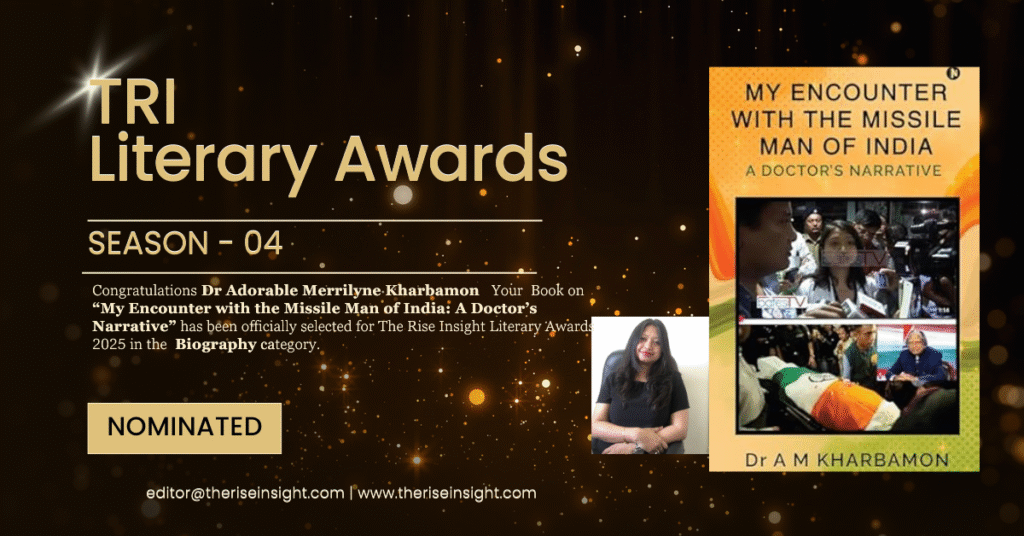 The Rise Insight is proud to extend its warmest congratulations to Dr. A. M. Kharbamon on her prestigious nomination for the TRI Literary Awards 2026 (Season 04) in the Biography category, for her remarkable work My Encounter with the Missile Man of India: A Doctor’s Narrative. This honor is a recognition of her unique contribution to Indian literature by preserving a pivotal moment in history through a deeply personal and professional lens.