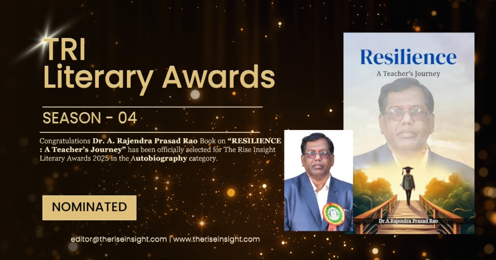 The Rise Insight is proud to extend its heartfelt congratulations to Dr. A. Rajendra Prasad Rao on the prestigious nomination of his inspiring memoir RESILIENCE: A Teacher’s Journey for the TRI Literary Awards 2026 – Season 04 under the Autobiography category. This recognition stands as a tribute not only to his literary brilliance but also to his lifelong dedication to education, values, and human transformation.