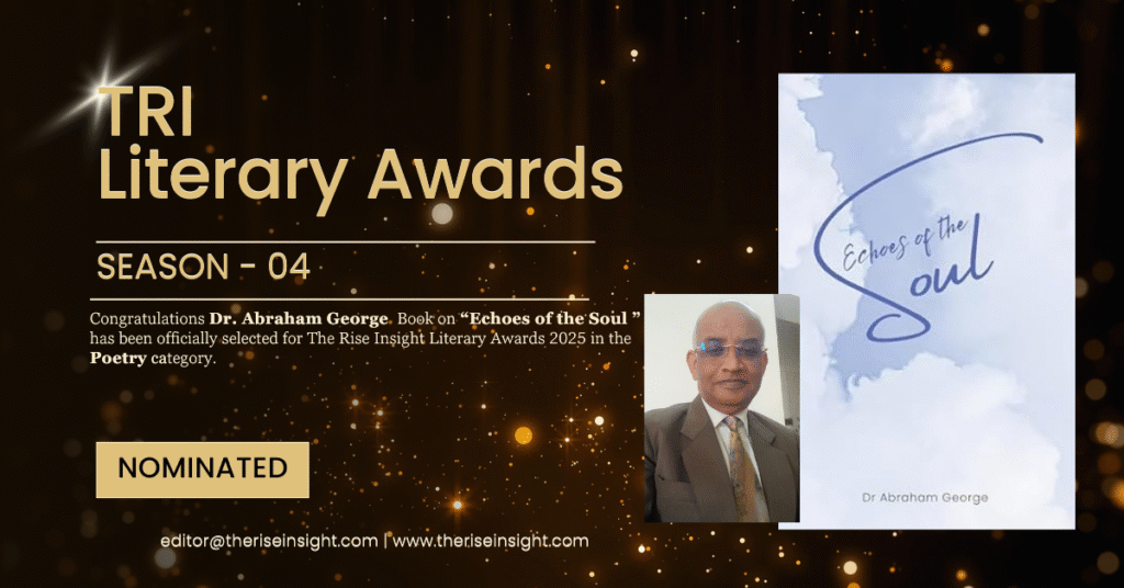 The Rise Insight once again congratulates Dr. Abraham George for this richly deserved nomination at the TRI Literary Awards 2026. His book Echoes of the Soul is a graceful celebration of inner truth, emotional depth, and poetic sincerity. Through each verse, he reminds us of the extraordinary beauty woven into life’s simplest moments. We extend our best wishes to him for the award results and look forward to witnessing the continued impact of his literary and educational contributions on readers and communities across the nation.