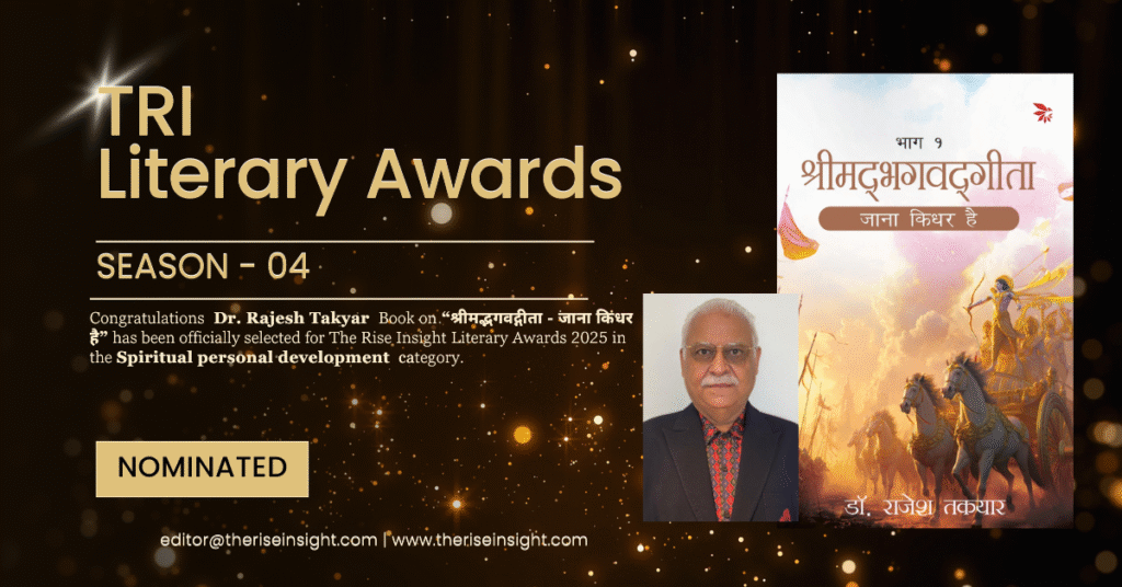 The Rise Insight proudly extends its heartfelt congratulations to Dr. Rajesh Takyar, whose transformative work “श्रीमद्भगवद्गीता – जाना किधर है” has been officially nominated for the TRI Literary Awards 2026 — Season 04. This prestigious nomination celebrates his profound contribution to spiritual literature and personal development, honoring a lifetime devoted to spreading wisdom, clarity, and divine insight.