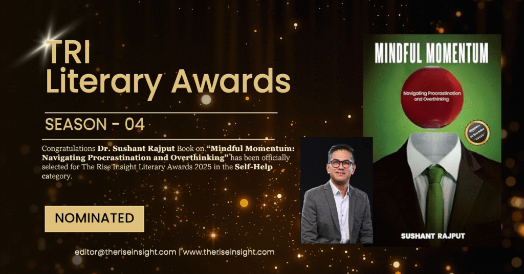 The Rise Insight proudly congratulates Dr. Sushant Rajput, acclaimed author of the Amazon Bestseller Mindful Momentum: Navigating Procrastination and Overthinking, on his well-deserved nomination for the TRI Literary Awards 2026 – Season 04, under the Self-Help Category. This recognition celebrates his profound contribution to modern self-development literature and his ability to empower readers with practical wisdom rooted in mindfulness, psychology, and personal growth.