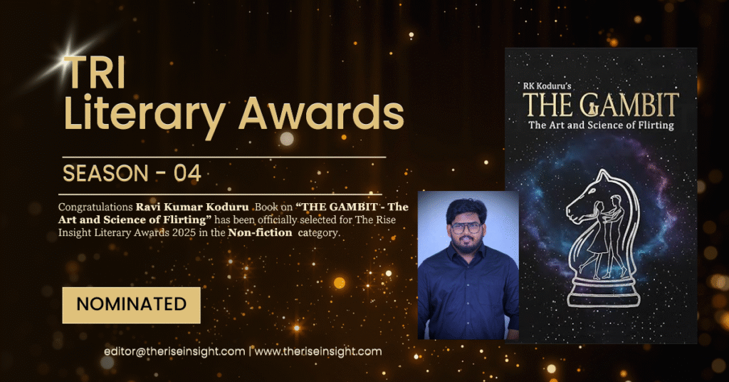 The Rise Insight proudly extends its heartfelt congratulations to Ravi Kumar Koduru, affectionately known as RK Koduru, on being officially nominated for the TRI Literary Awards 2026 – Season 04, under the Non-Fiction category. His exceptional new work, THE GAMBIT – The Art and Science of Flirting, stands as a profound contribution to contemporary literature, blending analytical precision with human insight in a manner both rare and compelling.