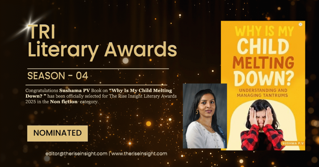 The Rise Insight is delighted to extend its warmest congratulations to Sushama PV, whose insightful and empowering book Why Is My Child Melting Down? Understanding and Managing Tantrums has been nominated for the TRI Literary Awards 2026 — Season 04. This nomination honors her exceptional contribution to non-fiction literature and her powerful influence on modern Indian parenting.